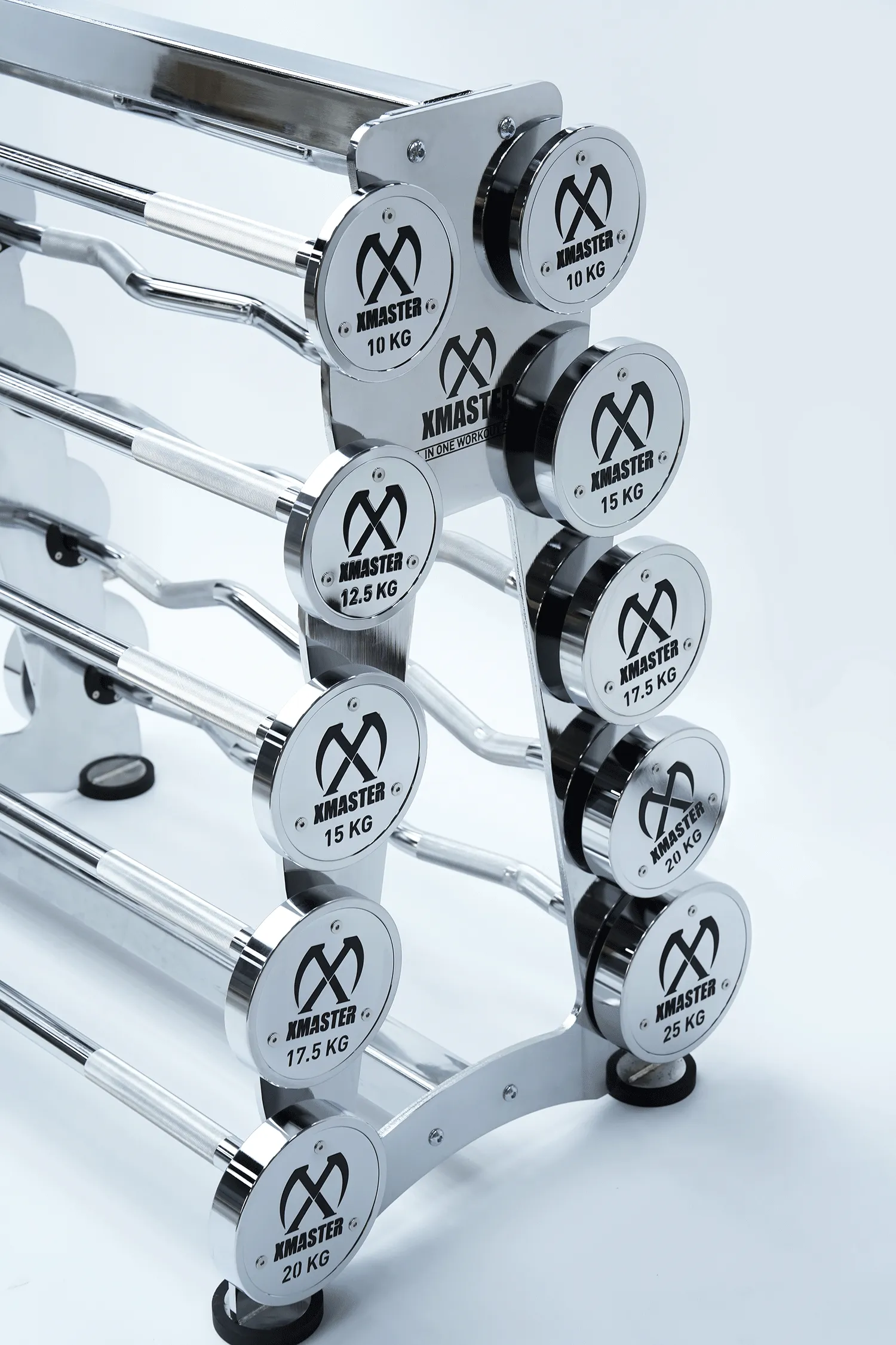 The angled shelves designed with rubber coated supporter to prevent the dumbbells from sliding.